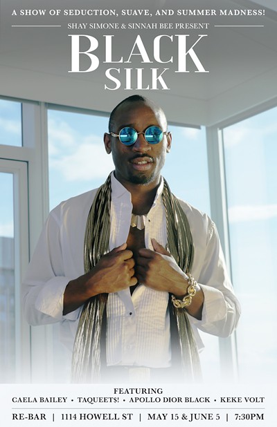Seattle dancers Shay Simone and Sinnah Bee invite you to the opening night of our first ever coproduced show, BLACK SILK, at Re-bar. These two bossladies bring you a show of seduction, suave and summer madness mixing burlesque, hip hop and a few styles in between. Our talented and gorgeous cast features Seattle's hottest performers Keke Volt, Apollo Dior Black, TAQUEET$! and local Seattle singer and the Gutter Queen, Caela Bailey, as your host for the evening.