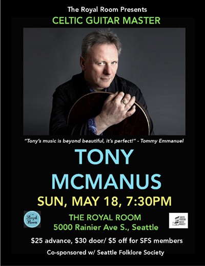 Hailed by John Renbourn as 'the best Celtic guitarist in the world,’ Tony McManus has also been listed as one of the 50 transcendent guitarists of all time by Guitar Player Magazine. Tony has both extended and transcended the parameters of contemporary Celtic music. Ranked by peers and predecessors alike alongside the guitar world’s all-time greats, his fiendishly dexterous, dazzlingly original playing draws on traditions from the entire Celtic world, along with further ranging flavours such as jazz and eastern European music. Long applauded for his uncanny ability to transpose the delicate, complex ornamentation characteristic of traditional bagpipe or fiddle tunes – even the phrasing of a Gaelic song – onto his own six strings, McManus is being increasingly acknowledged as a pioneering figure in bridging the realms of Celtic music and other guitar genres, performing with the likes of Alasdair Fraser, Kevin Burke, and Natalie McMaster, among others. He has come to represent Celtic music in the guitar world, making appearances at guitar specific festivals such as the Chet Atkins Festival in Nashville; the Ellnora Guitar Festival in the Krannert Center, with the likes of Pat Metheny, Kaki King, Molly Tuttle, and Steve Dawson; and he has appeared at Guitar Festivals in Italy, Australia, France, Scotland, England, and Germany. He played at the famous Ryman Auditorium in Nashville in the “All Star Guitar Night” with Béla Fleck and more, headlined by the legendary Les Paul. His ability to reach audiences unfamiliar with traditional music is amazing, even reaching into classical events such as the Dundee and Derry Guitar festivals, appearing six times between the two!