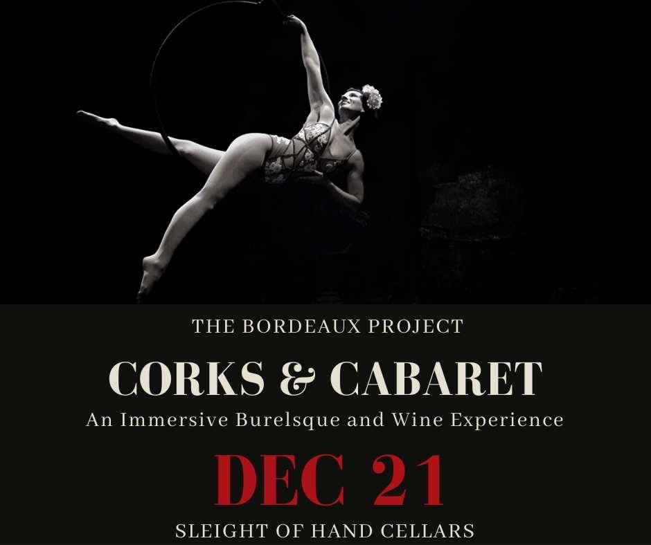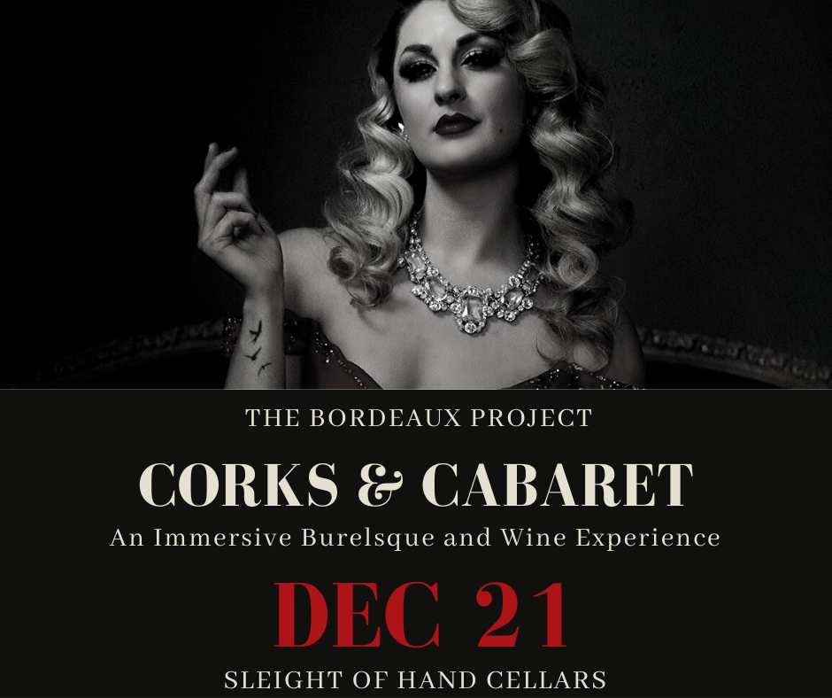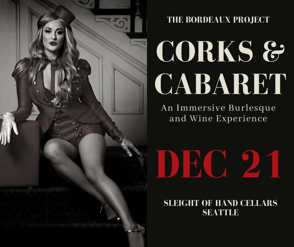 "Corks and Cabaret" is a debut event on Dec 21st in partnership with Sleight of Hand Cellars SODO in the very place the Project was started, Seattle! We are excited to bring to you and evening of world class burlesque and aerial performances alongside beautiful expressions of Washington State Wines.