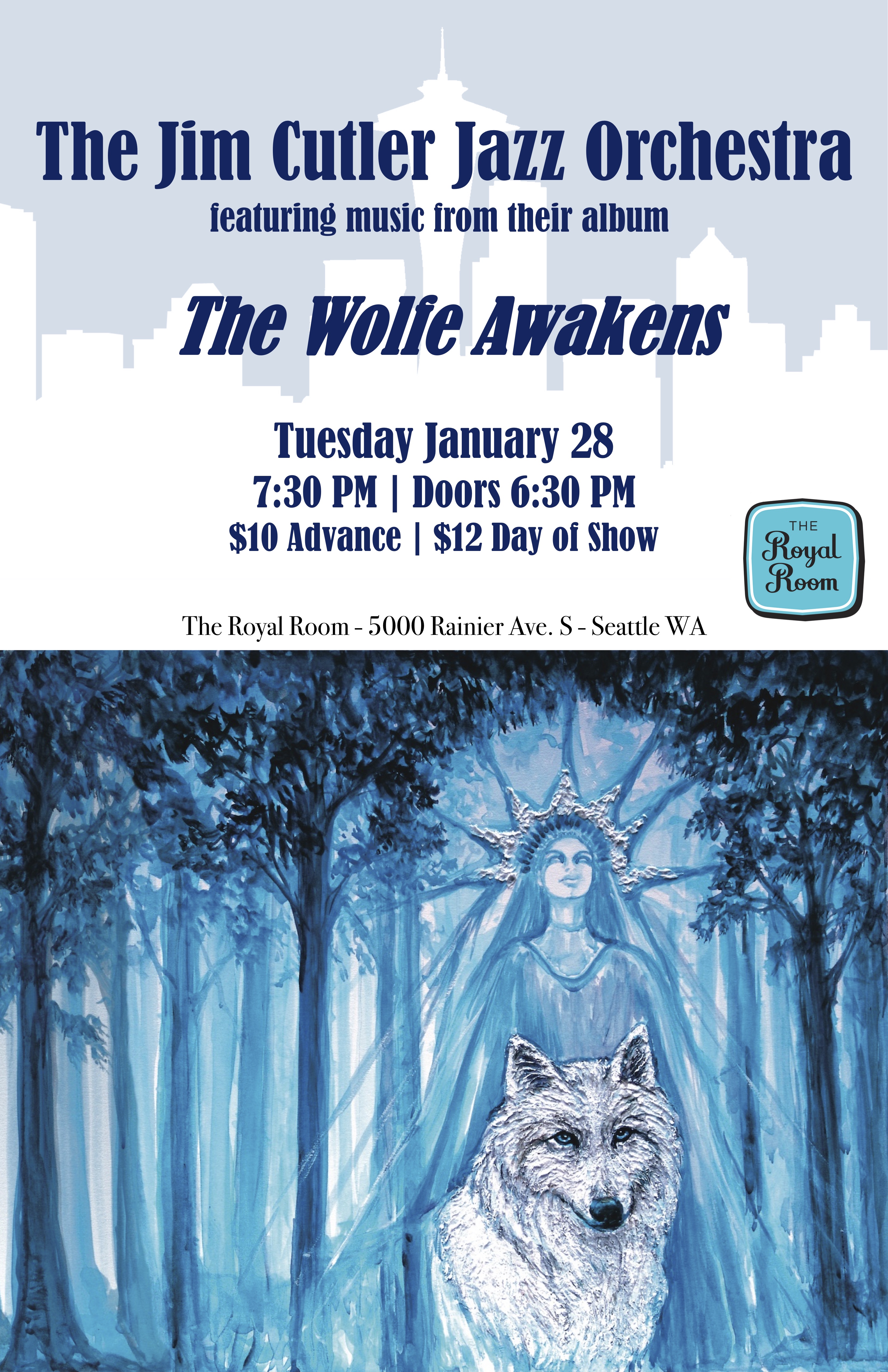 Formed in January of 2004, the Jim Cutler Jazz Orchestra features top Northwest musicians performing music written by band members, Northwest composers, and material from classic big bands including works by Gil Evans, The Stan Kenton Orchestra, Maynard Ferguson, and Buddy Rich. The 16 piece ensemble recently released a new album, The Wolfe Awakens, which features original music by Jim Cutler, Daniel Barry, and Matso Limtiaco.