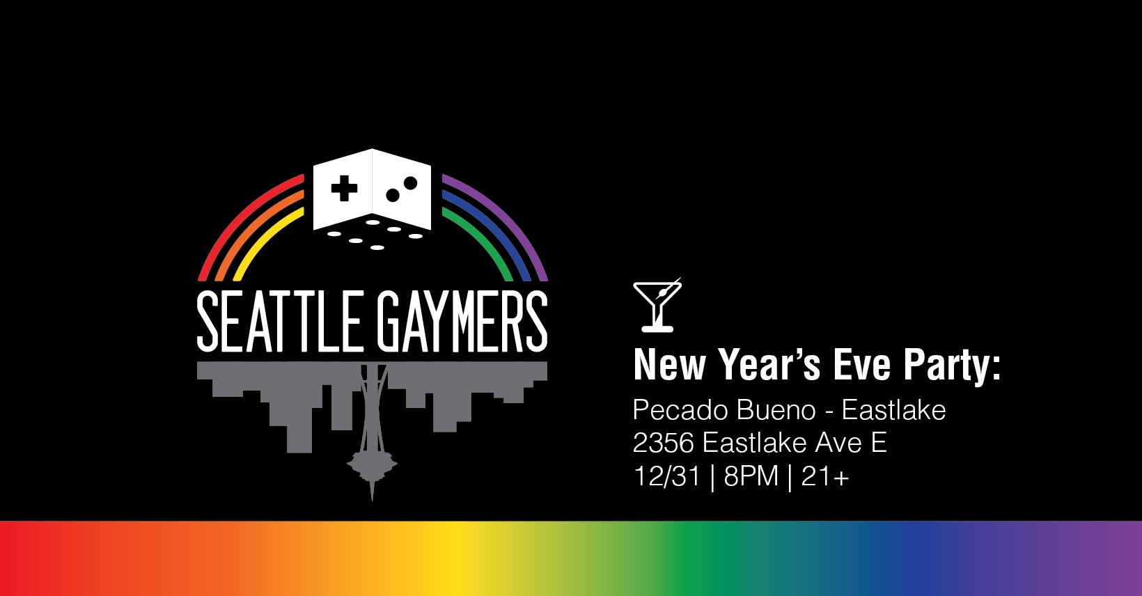 For the first time in forever, Seattle Gaymers is thrilled to bring you our 2019 New Year's Eve party! Hosted in conjuction with our friends at Pecado Bueno Eastlake, we'll be near Lake Union with a view of the fireworks in the sky. Come on down, hang out, have some food and libations, and ring in the new year and decade with us!