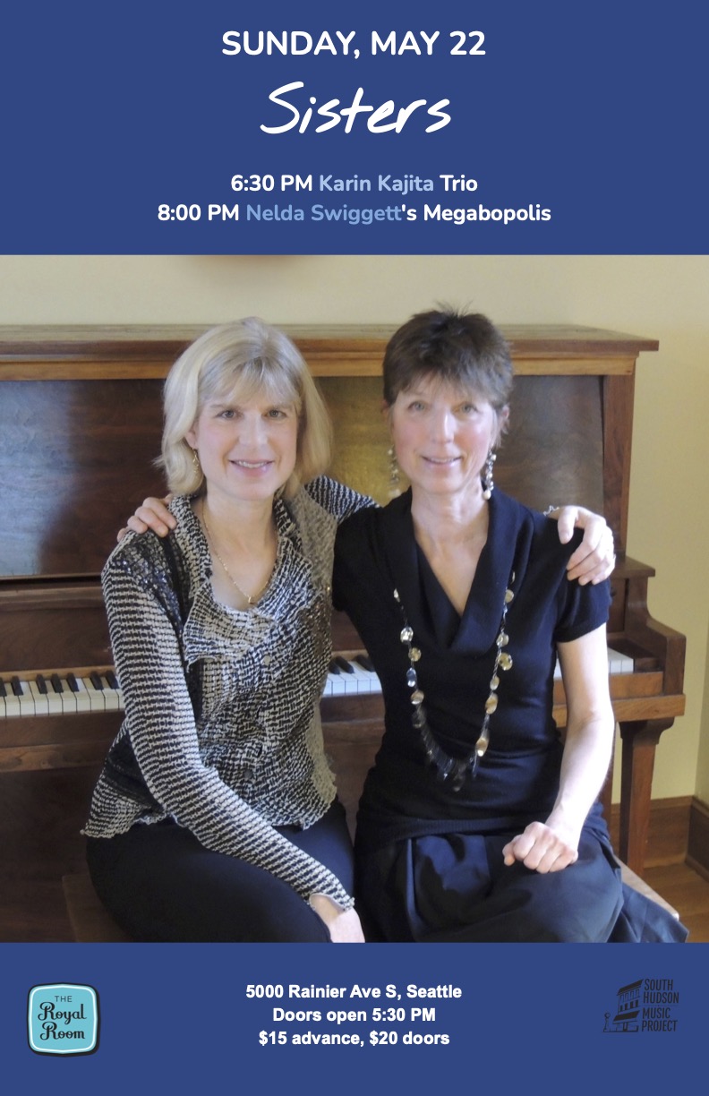 Karin and Nelda, Bainbridge Island natives, grew up in a household of five siblings where piano lessons were mandatory. Whereas the others didn't like to practice, these two frequently fought for a seat at the family Steinway. Now they love to share the stage and are each other’s biggest fan. At this unique Royal Room event, each presents her own band in a program of largely her own compositions.