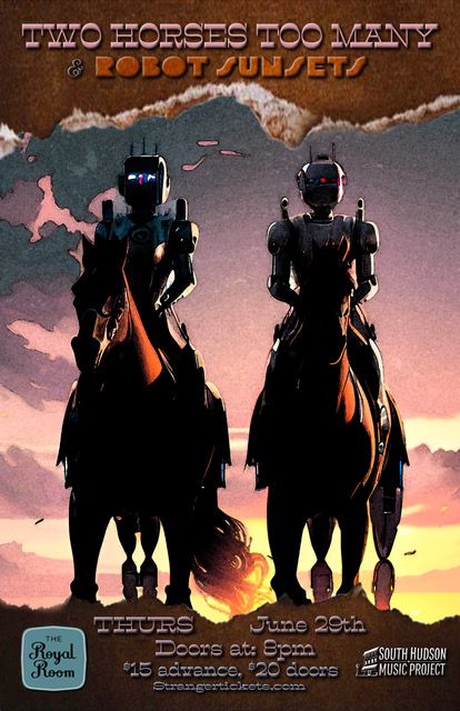 Two Horses Too Many is a spaghetti western band born and bred at Cafe Nordo in Seattle, Washington. We play original music inspired by the compositions of the late, great Ennio Morricone, as well as a few covers in the western vein. Our stage show is bathed in the cinematic glow of wide-screen projections, sharply dressed desperados play twangy electric guitar and smokin' Hammond organ, and a lone trumpeter rides off into the sunset as strings swell in the distance. We feature Annastasia Workman on keys and accordion, Evan Mosher on vocals, trumpet, and percussion, Aimee Zoe on drums, Dayton Allemann on guitar, and Ivan Molton on bass.