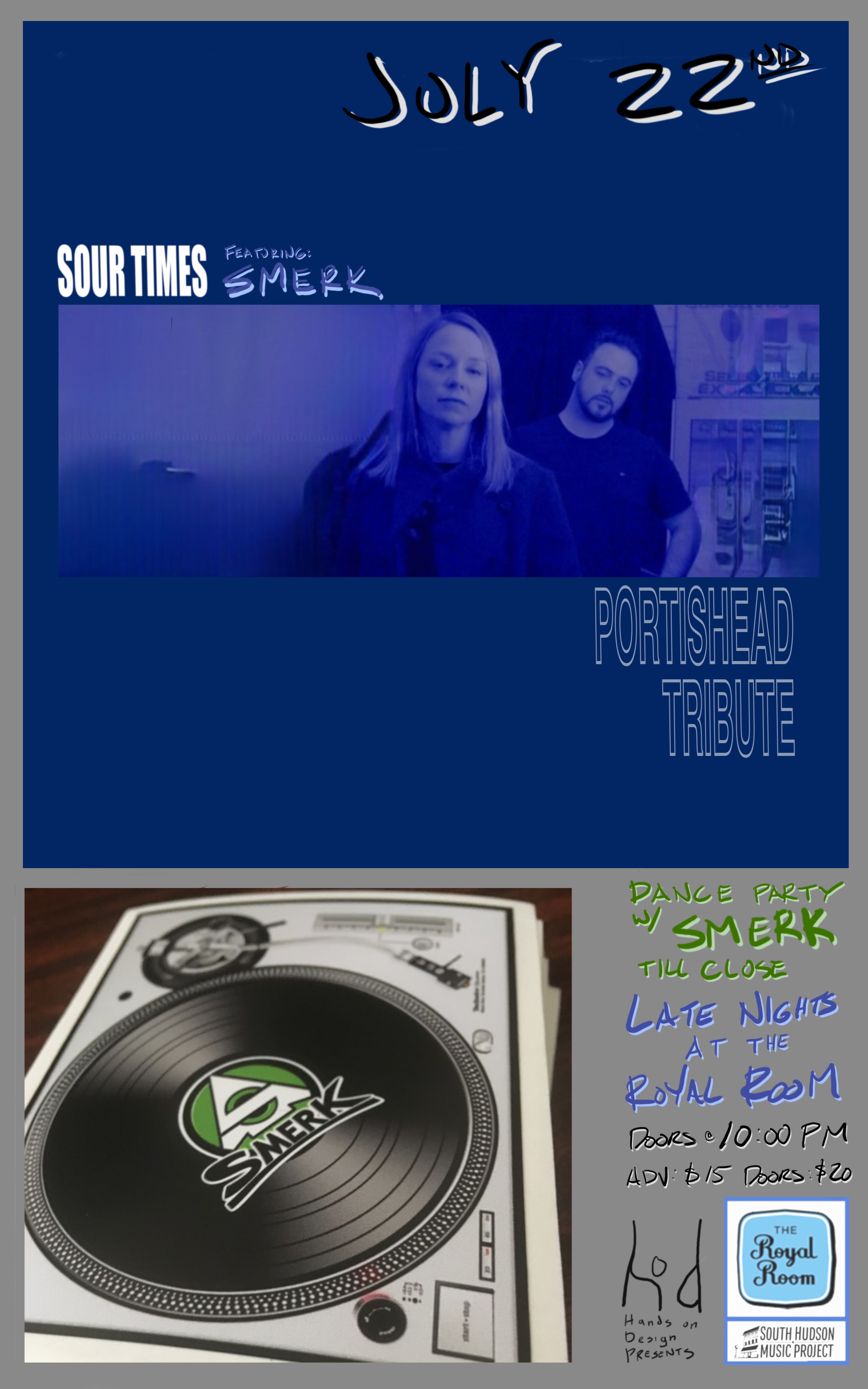 Come hang late night at the Royal Room with Sour Times, a Portishead Tribute, followed by a dance party with Smerk!