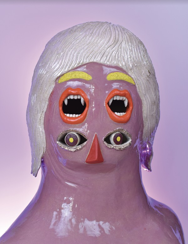 Seattle based ceramicist Emily Counts creates multi-disciplinary sculptures that engage traditional craft techniques to explore identity, memory, mortality, and our relationship to nature. In this immersive installation, Sea of Vapors, Counts has masterfully staged a collective of female figures who are traveling by boat through a dream space to meet their venerated Queen.