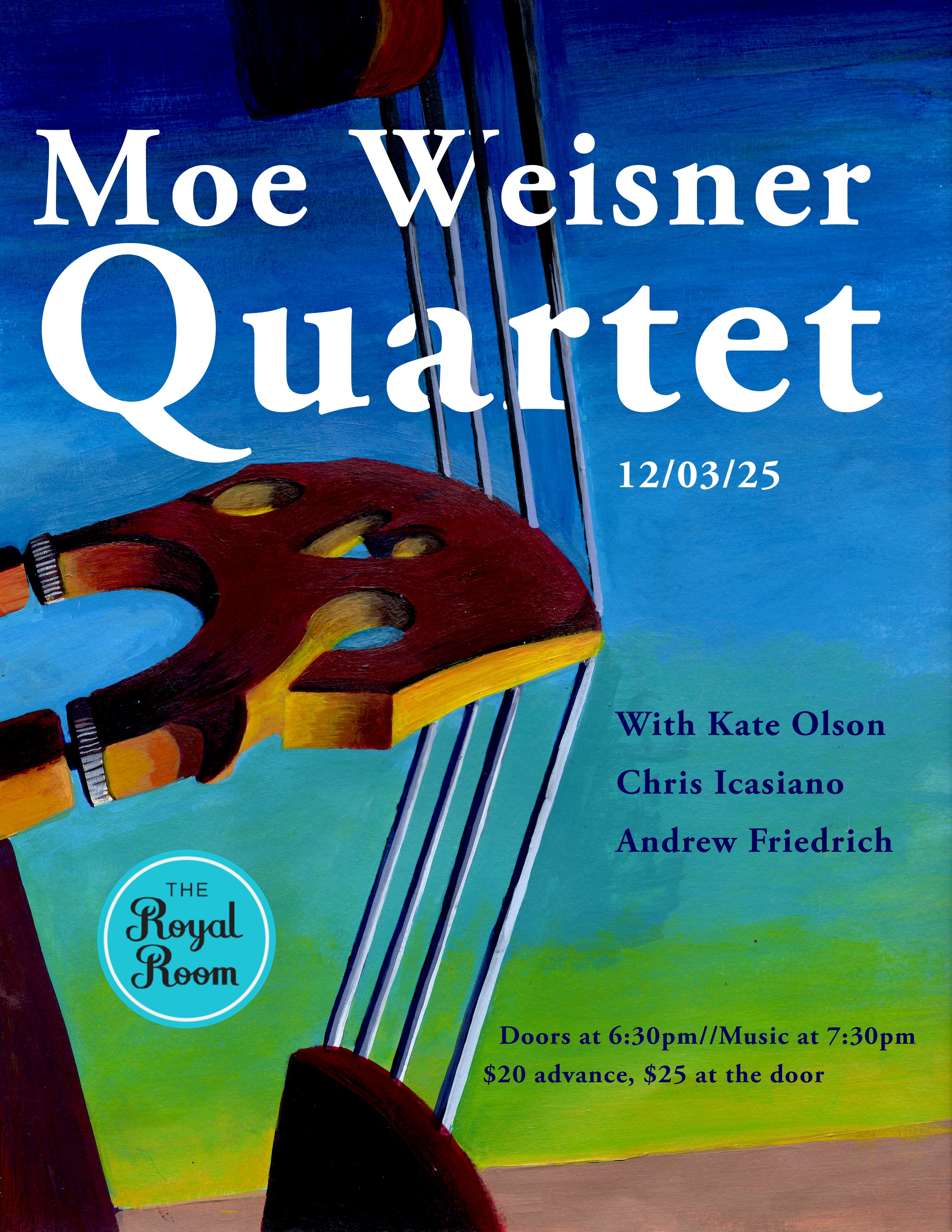 Bassist Moe Weisner is quickly emerging as a voice to watch in the Northwest jazz scene. Known for his warm tone, melodic sensibility, and versatility, Moe leads a band that blends jazz tradition with modern textures and compositional depth. A graduate of Cornish College of the Arts, Moe has collaborated with a diverse array of musicians and ensembles, from jazz combos to classical chamber groups. His music reflects that range — incorporating lyrical basslines, open harmonic spaces, and rhythms that breathe. With drummer Chris Icasiano, guitarist Andrew Friedrich, and saxophonist Kate Olson, the Moe Weisner Quartet explores everything from meditative ballads to uptempo swing and odd-meter originals. The focus is always on musicality, storytelling, and interaction. Whether you’re drawn to Bill Evans-style introspection or the groove-forward approach of contemporary groups, this performance offers a rich and rewarding journey into the art of the jazz quartet.