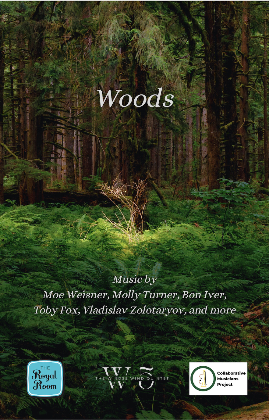 Winds5 is excited to present their next concert series: Woods. This program features a mix of music inspired by forests and nature, from Bon Iver to forest-themed video game music. We are also premiering two brand-new pieces written for wind quintet, one of them by Moe Weisner, a bassist and composer based in Seattle. Join us for a unique afternoon of music that will take you on a walk through the Woods.