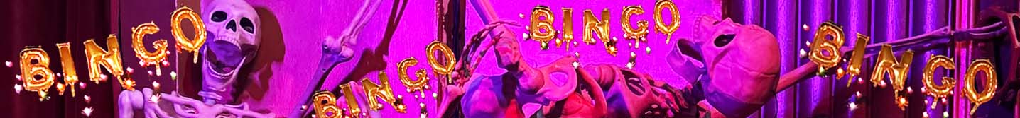 **Venue has a strict NO GLITTER policy. This includes body glitter and all other types of glitter. Please be sure your costume includes no glitter and that you have no glitter on your person when you arrive at Haunted Bingo.**