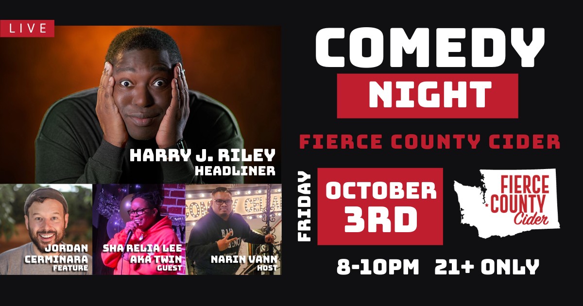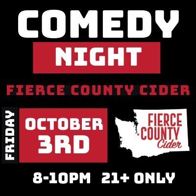 Comedy is back, Friday, October 3! Join us at the Fierce County Cider tap house in South Hill for laughs, hard cider and craft beer as we welcome the following lineup of comedians:
