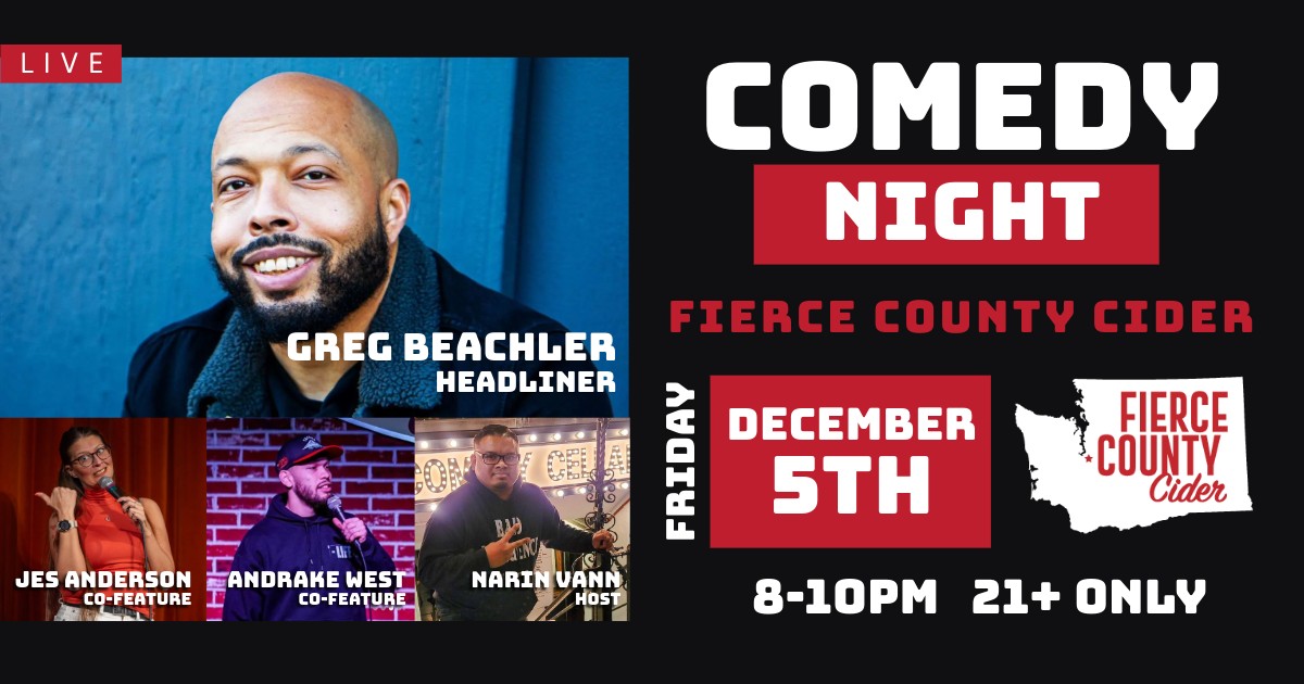 Comedy is back, Friday, December 5! Join us at the Fierce County Cider tap house in South Hill for laughs, hard cider and craft beer as we welcome the following lineup of comedians: