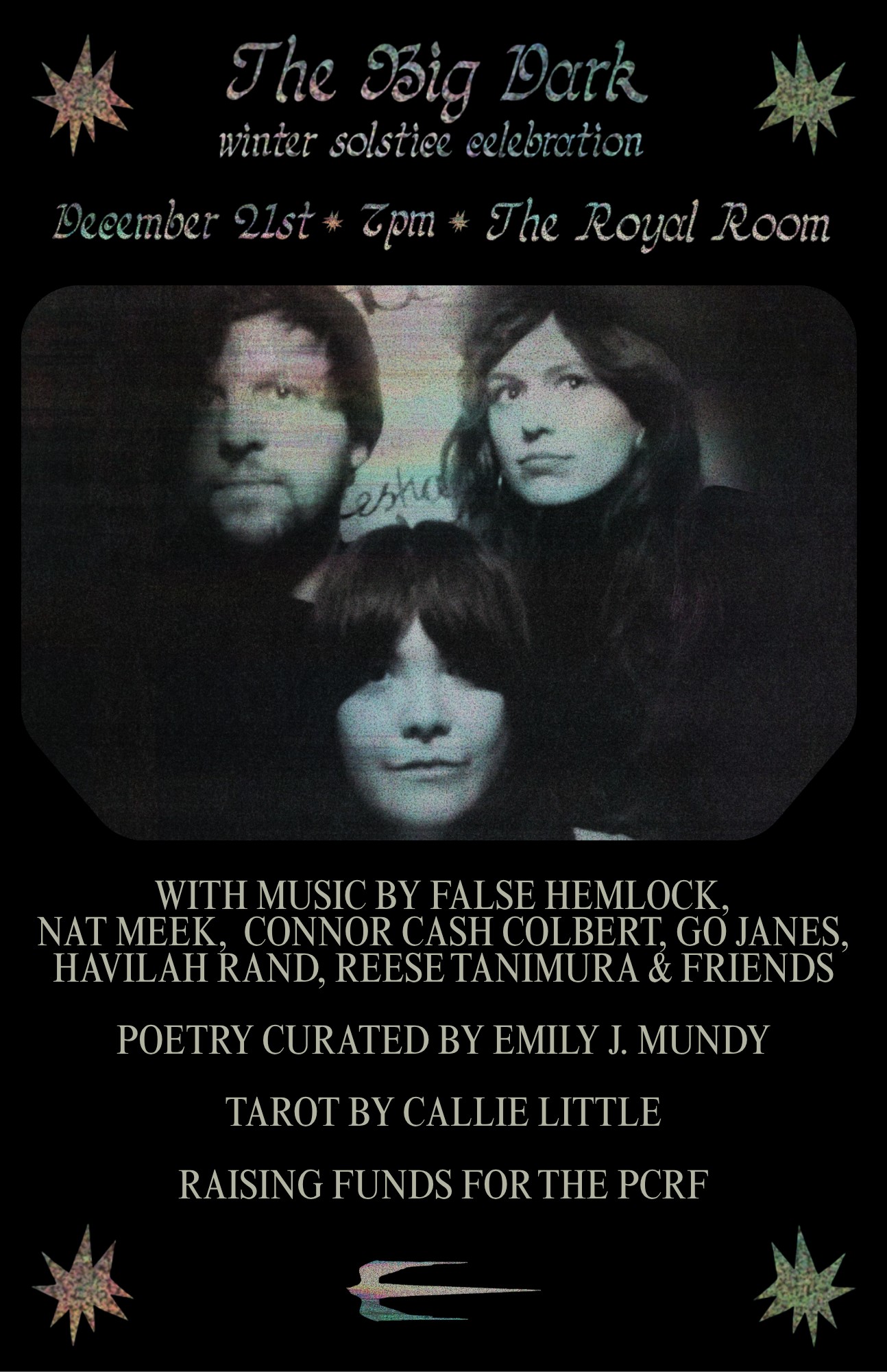 A winter solstice celebration featuring Seattle songwriters, poets, and tarot for an intimate, witchy, community-centered night. All proceeds benefit the Palestine Childrens Relief Fund (PCRF).