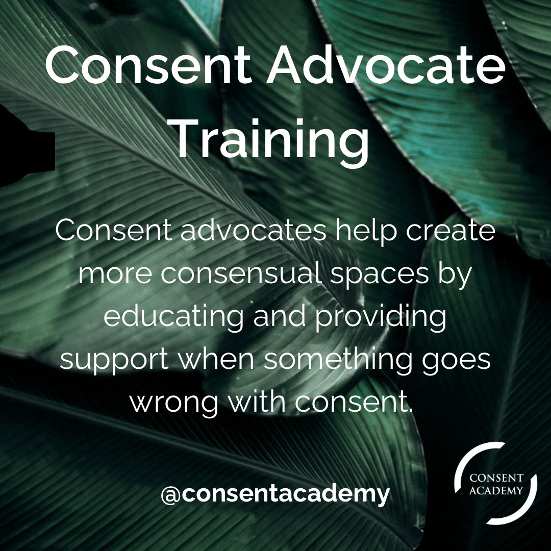 Consent advocates help create more consensual spaces by educating and providing support when something goes wrong with consent. It's a specialized role most people can learn to do with the proper training, support, and practice.