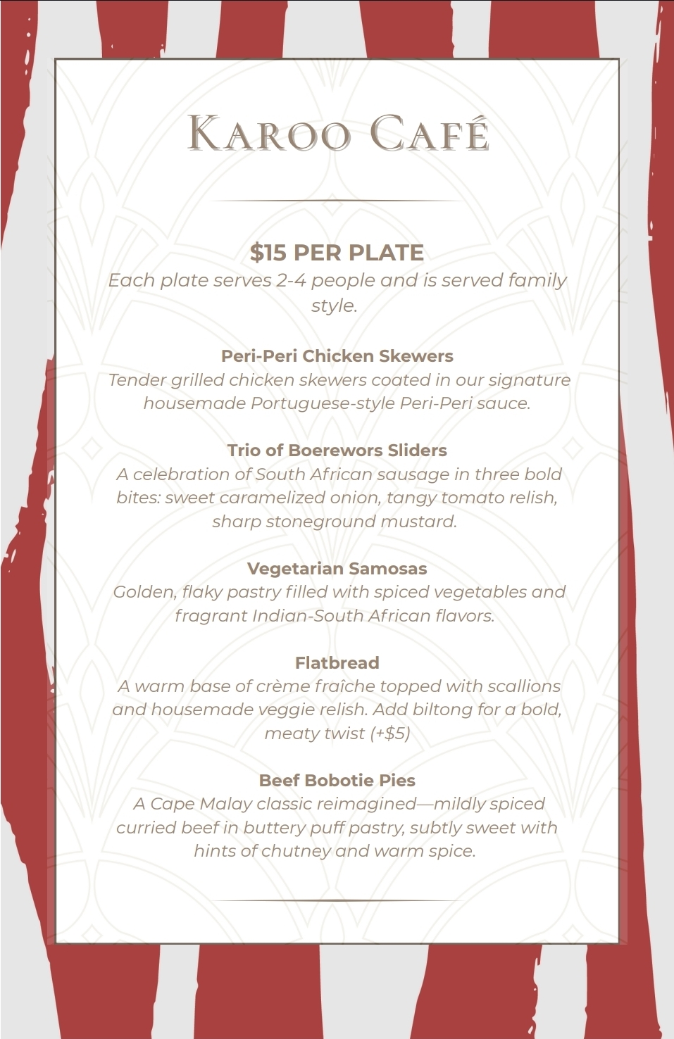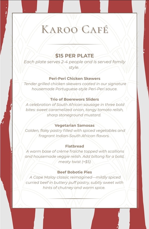 Karoo Cafe is a women-owned South African bar that is filled with luscious soft seating, vibrant colors and patterns, a high-end cocktail menu, and traditional South African fare. This gorgeous new venue sits in the historic Butterworth building on 1st ave in Pike Place Market.