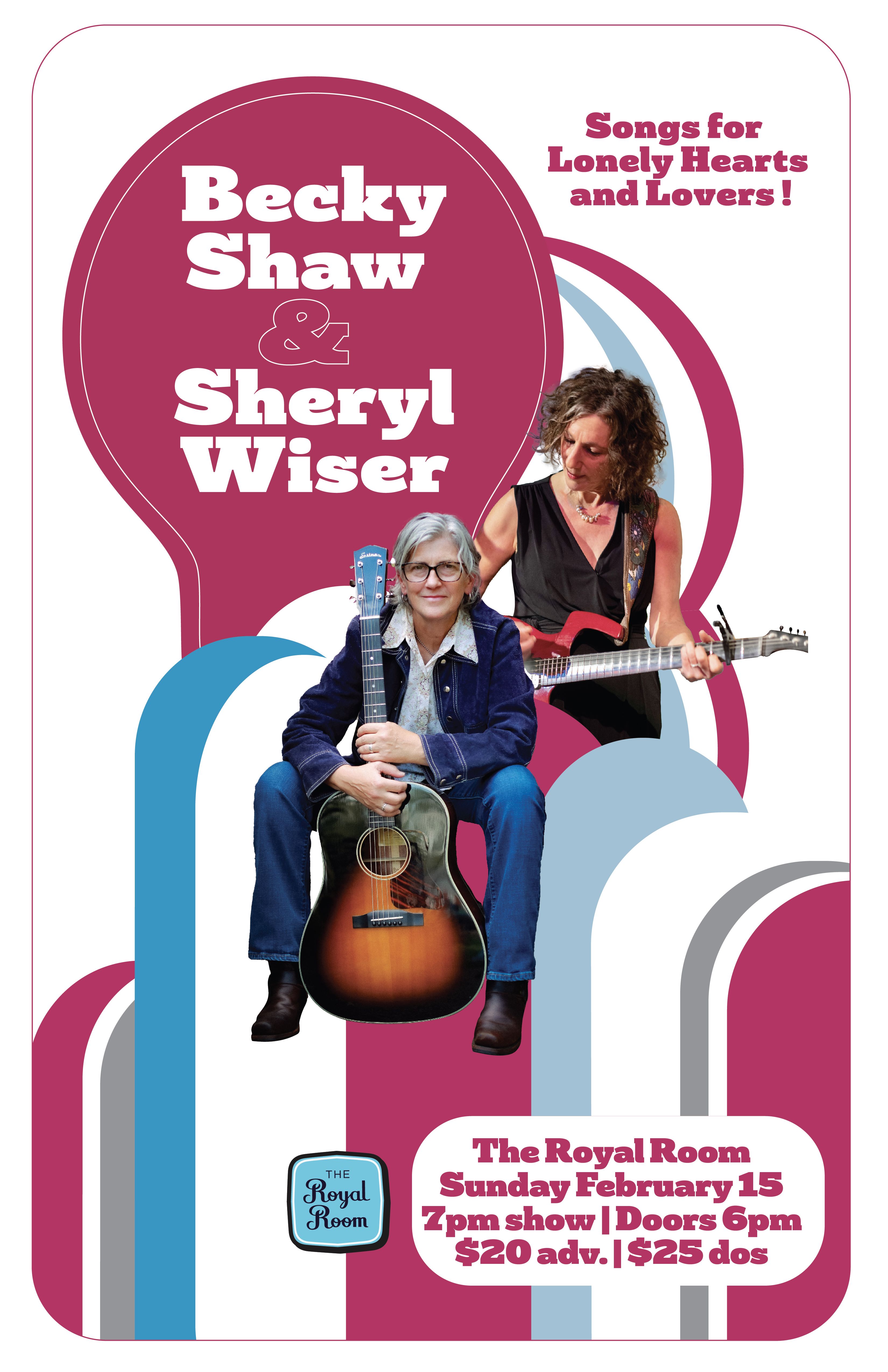 Experience an evening of intimate storytelling and eloquent musicianship at The Royal Room in Seattle, featuring a collaborative performance by singer-songwriters Becky Shaw and Sheryl Wiser on Sunday, February 15, 2026.
