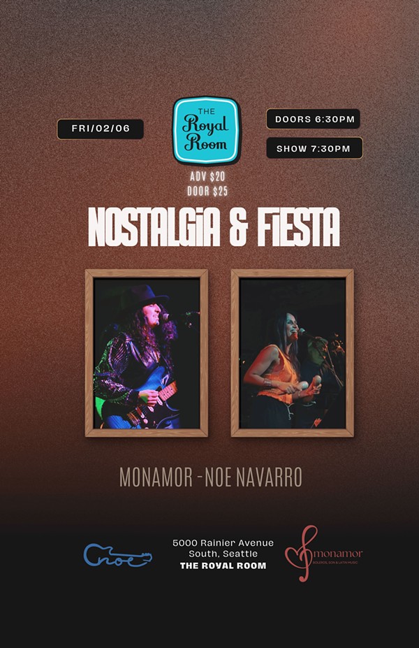 The Latin experience lives in beautiful tension - we carry memories even as we dance. Noé Navarro, a Costa Rican electric guitarist and singer-songwriter, opens the evening with soulful nostalgia, blending indie Latin American rock and Afro rhythms from her EP, Luna Negra. Monamor, a Seattle-based acoustic ensemble led by vocalist Monica, brings the fiesta with boleros, Son Cubano, and Cha Cha Cha. Together, they capture the full heart of Latin music - reflection and celebration.