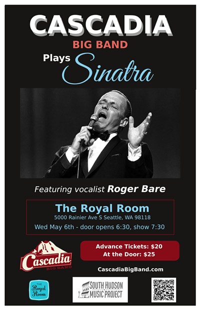 Cascadia Big Band is proud to bring back our famous Sinatra show featuring our very own Frank Sinatra in Roger Bare. This show celebrates the infamous 1966 “Sinatra at the Sands” recording with the Count Basie band conducted and arranged by Quincy Jones. We will be featuring many of those charts and others all done by “Ol Blue Eyes”. This show has sold out in the past so don’t wait to get your tickets.