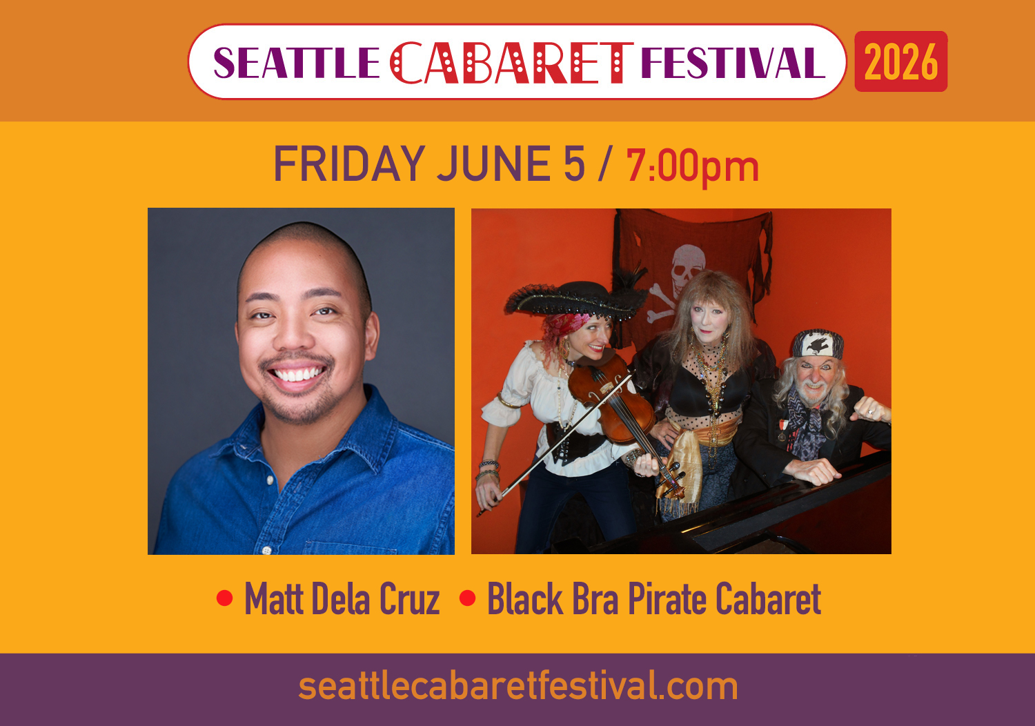 Seattle Cabaret Festival 2026 Presents: MATT DELA CRUZ and BLACK BRA PIRATE CABARET - Fri Jun 5 at 7 PM
