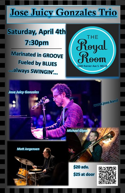 Groove, blues, and swing guide us through our musical adventure. As a child of the 70's, Jose "Juicy" Gonzales draws from that era to expand the traditional songs of the jazz trio Expect to hear arrangements of The Beatles, Neil Young, Simon and Garfunkel, as well as standards and blues from the Great American Songbook. Drummer Matt Jorgensen and bassist Michael Glynn bring their groove to the trio.