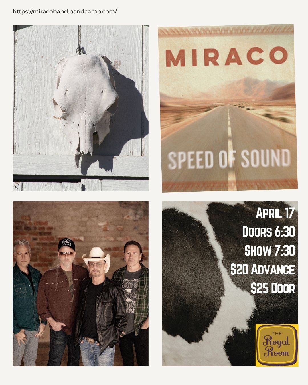 Advance tickets can only be purchased online-we do not sell advance tickets at the venue. Refunds are not available within 48 hours of the event. Tickets do not guarantee seating during shows at the Royal Room.