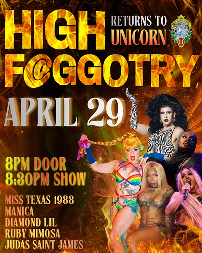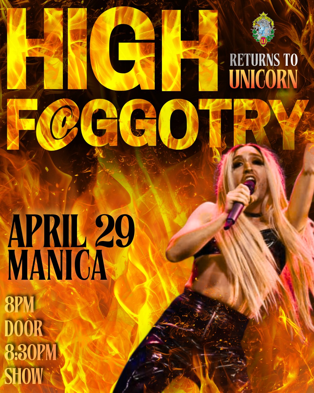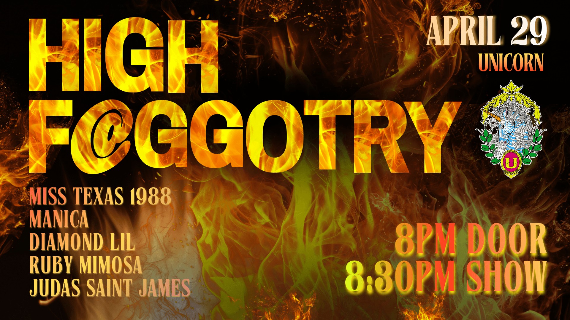 High F@ggotry! A true variety show bringing you seattle’s finest artists from the full spectrum of f@ggotry, glamorous gayety, f@g adjestant friends, and good old-fashion Queers!