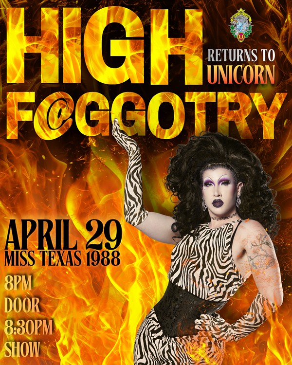 This month featuring the jaw-dropping talents of MANiCA, Ruby Mimosa, Diamond Lil, Judas Saint James, and your host Miss Texas 1988! This will be a top-notch night of drag, burlesque, music, dance, and brilliant acts beyond category.