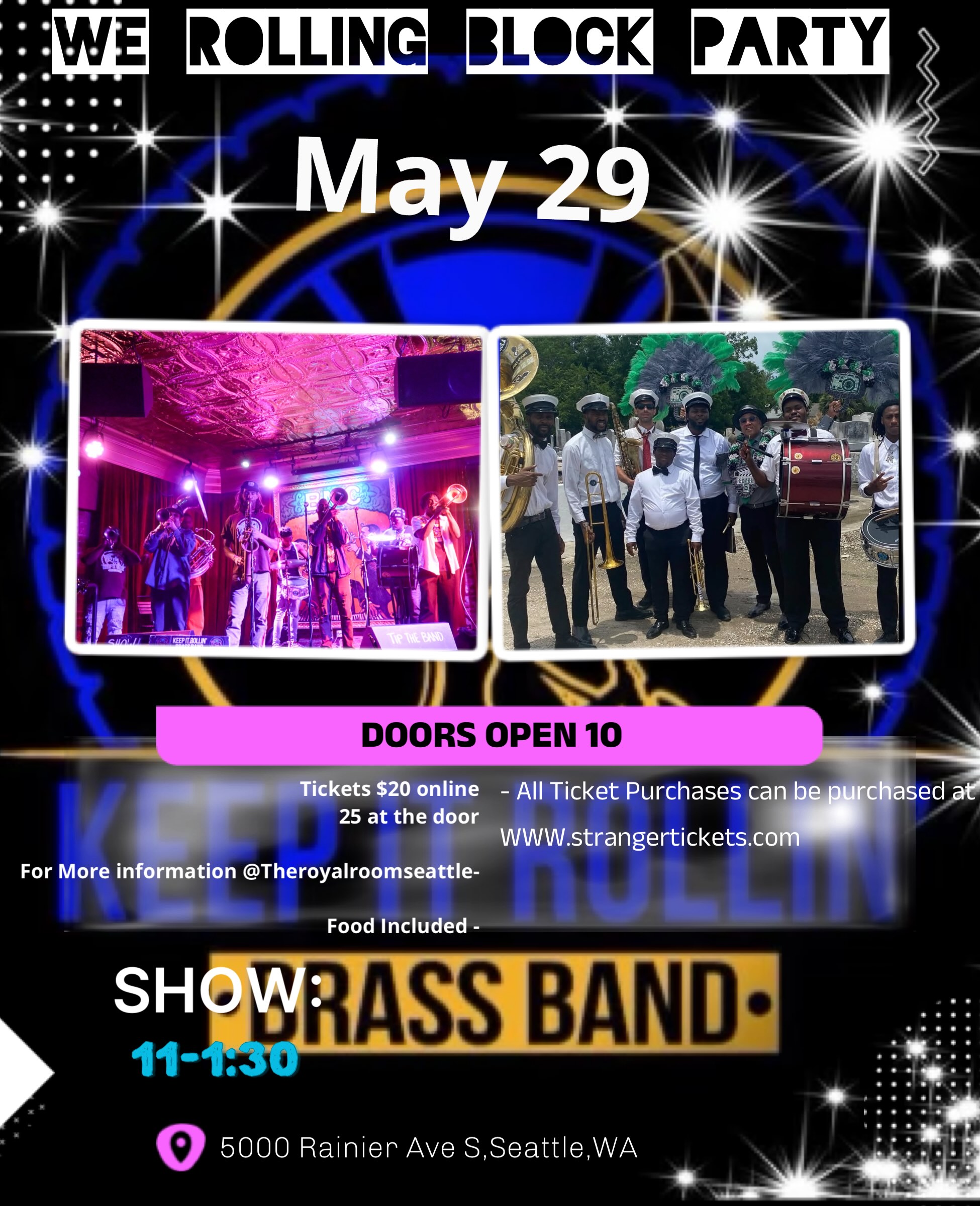 The Keep It Rolling Brass Band is a young, talented group of musicians from New Orleans, Louisiana. The band was founded in 2017 while the members were still in high school. They cut their chops the same way as most of the legendary brass bands of the past 50 years: by putting in time playing in storied locales like Jackson Square, Bourbon Street, the French Market, and Frenchmen Street. Playing for the city’s visitors in the Quarter, they soon developed a repertoire of songs that spans generations. In addition to the standard brass band songs that visitors to the city have come to expect, they play everything from Bobby Womack’s “Across 110th Street” to Mario’s “Let Me Love You.” Their professional success came quickly when they made their second-line debut at the Big 7 Social Aid and Pleasure Club’s 2018 parade and were subsequently cast as the featured brass band in Ciara’s music video for her 2019 single “Dose.” Since then, they’ve performed for Solange and Rob49 and collaborated on brand partnerships with Nike and Under Armour. As the band has continued to work on their craft, they’ve added originals to their catalog that have become part of their signature sound. When you hear “Walker Like a Dog,” “Powerhouse,” or “Bourbon,” you can be sure you’re getting the well-honed sounds of the Keep It Rolling Brass Band.