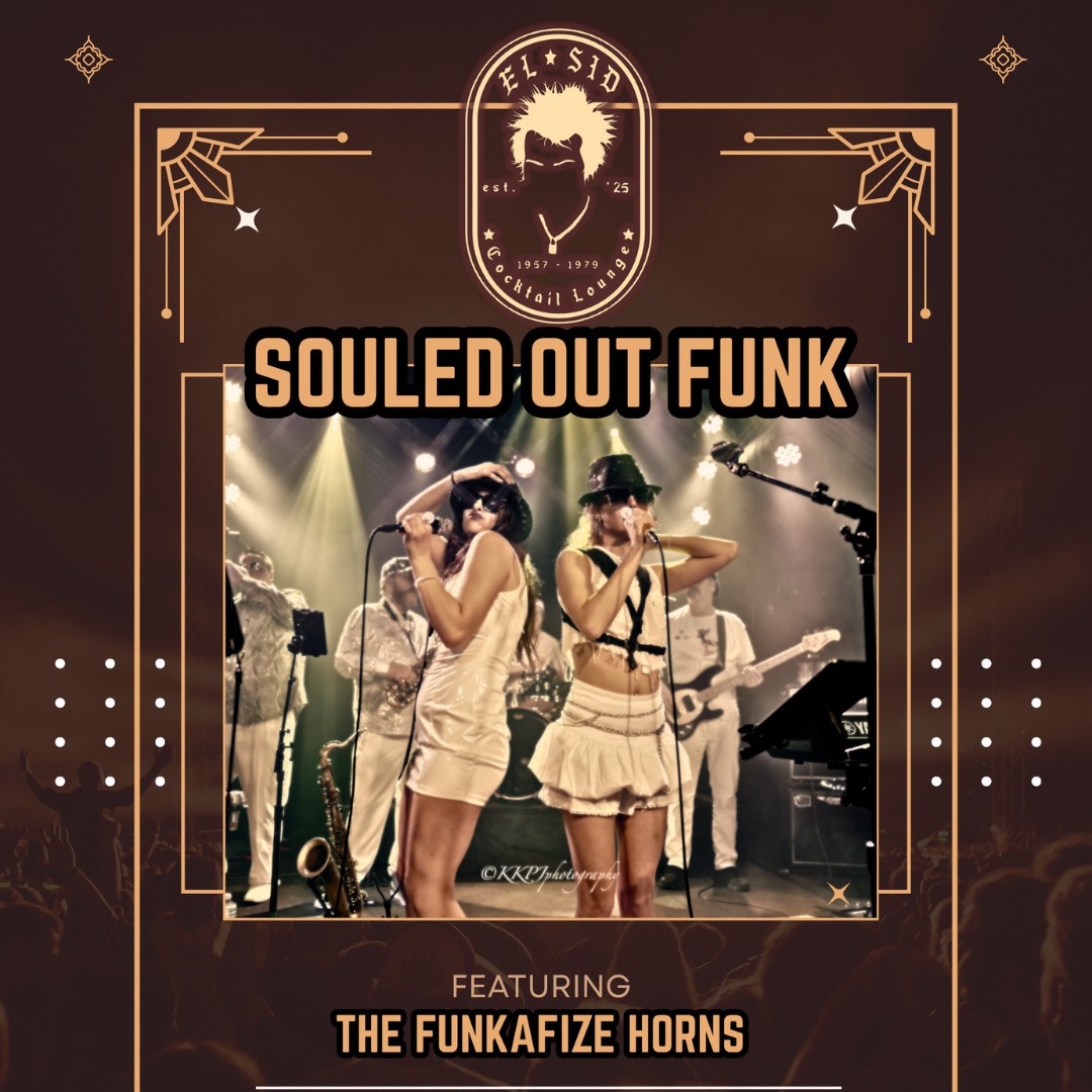 Get your weekend started with Souled Out Funk & The Funkafize Horns, bringing high-energy, smiles, & groovy vibes you didn’t know you needed. 60s–90s funk, disco, pop, soul, and rock![]()