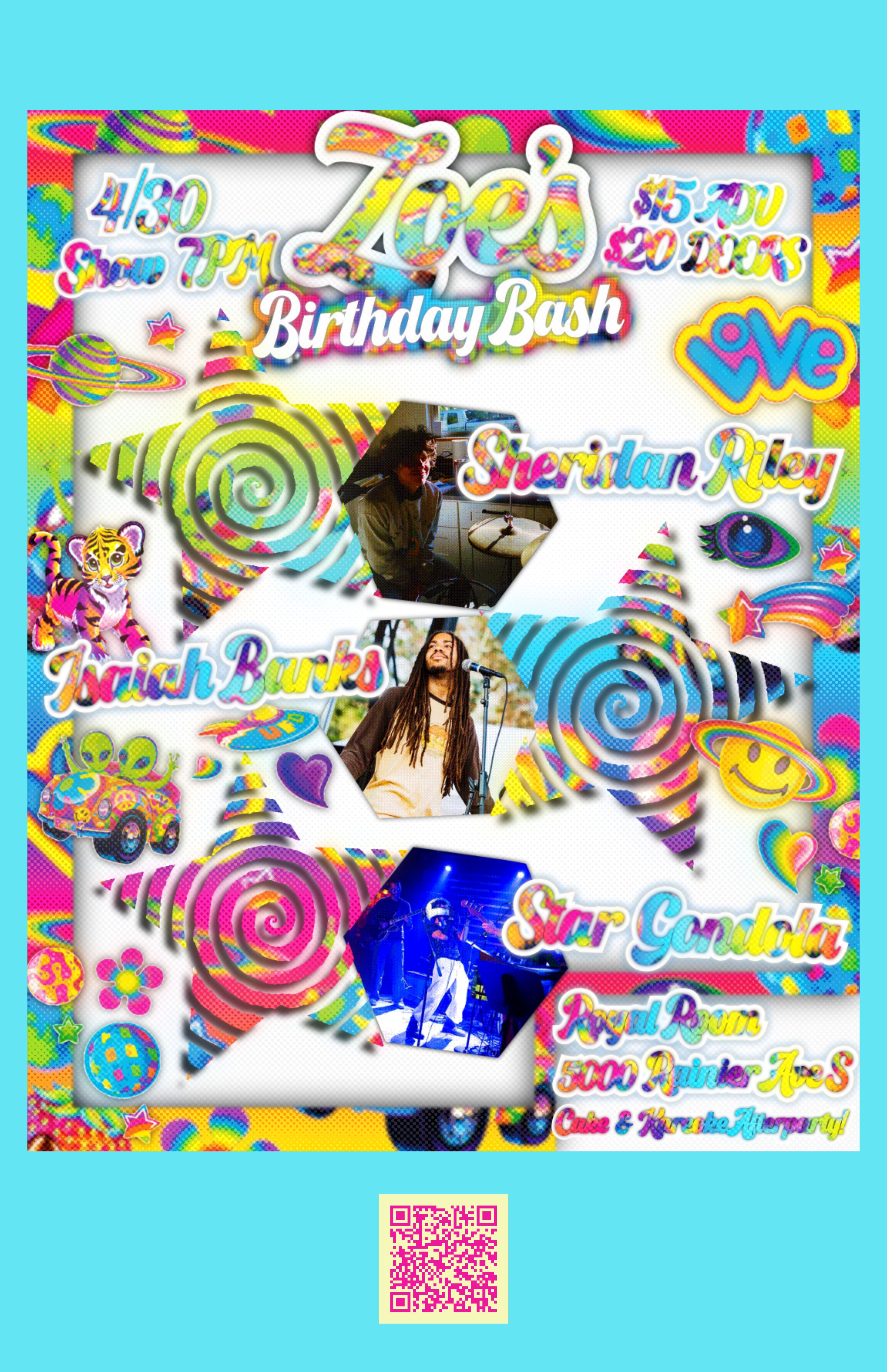 Come celebrate Zoë’s birthday with us at the Royal Room!! Zoë has served and bartended at the Royal Room for four years and is hosting her 27th birthday party here with all of her favorite people. There will be live music with visuals, cake, photobooth, and a karaoke dance afterparty!!