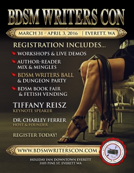 BDSM Book Fair featuring erotic author Tiffany Reisz, world renowned Sex Therapist Dr. Charley Ferrer, local authors Jean Johnson and Marie Tuhurt, and more. Fetish Vending provided by Lovers Lair and subSensuals. Spirit samples by Blue Water Distillery. Register to win a 4-day/3-night vacation giveaway at Caliente Resorts & Spa. Special goodie-bags while supplies last. Special raffle ticket for first 25 people. No one under 19 yrs admitted. Leave the kids at home and have some adult fun! www.BDSMWritersCon.com/book-fair