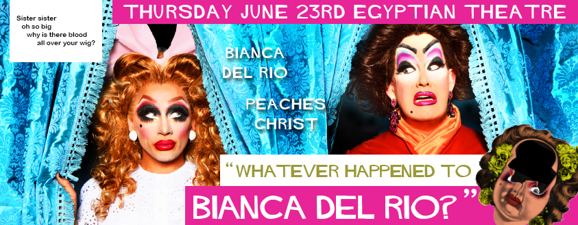 Sister, sister, oh so big, why is their blood all over your wig...? Peaches Christ invites you to attend the Seattle Premiere of her hag-a-rific theatrical showcase "Whatever Happened to Bianca Del Rio?" starring the unmatched talents of...