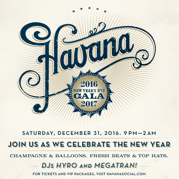 Each year we celebrate another year of leisure by looking forward to all the good fortune ahead, and we do it in our signature style. The 2016/2017 Havana New Years Eve Gala is, as always, the party of the year and not to be missed. This year DJs HYRO and MEGATRAN will provide the soundtrack, the staff will be dressed to kill, and we will have case upon case of champagne to toast the coming of 2017!!!
