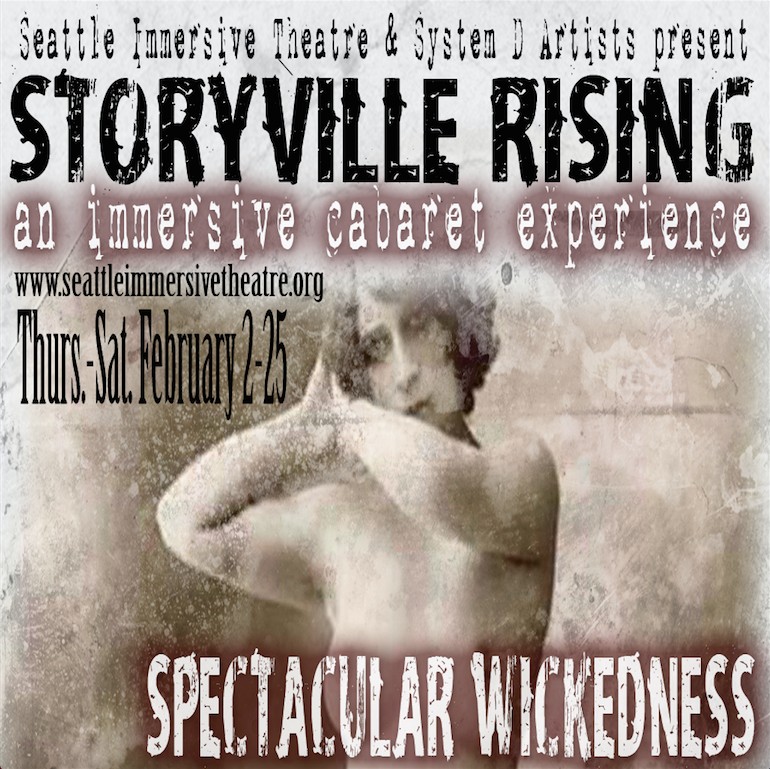 Seattle Immersive Theatre teams up with System D Artists to present Storyville Rising, a fully-immersive theater/cabaret experience which recreates Storyville, the infamous “red-light” district in New Orleans, from 1897-1917. Storyville Rising is an exploration of sex, race, power and privilege in Reconstruction-era America, told through theater, historical narrative, live music, transgressive burlesque and cabaret. Original text, as well as transcripts and interviews, tell the story of the habitués of Storyville and the forces of “polite society” that sought to shut it down.