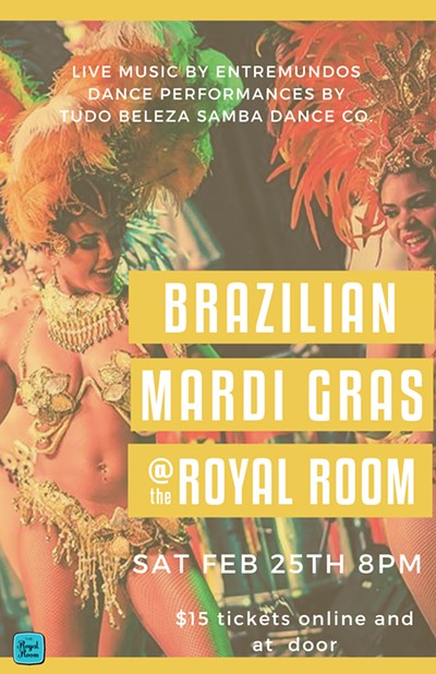 The best Brazilian Mardi Gras (carnaval ) is back to the The Royal Room with performances by some of the most seasoned musicians and dancers from around the globe. Enjoy live music by EntreMundos Quarteto and dance performances by Tudo Beleza Samba Dance Co.