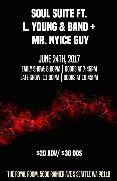Soul Suite features R&B crooner L. Young from Los Angeles by way of Kentucky backed by Andra' Green & The Solution Band with Mr. Nyice Guy on the 1's & 2's