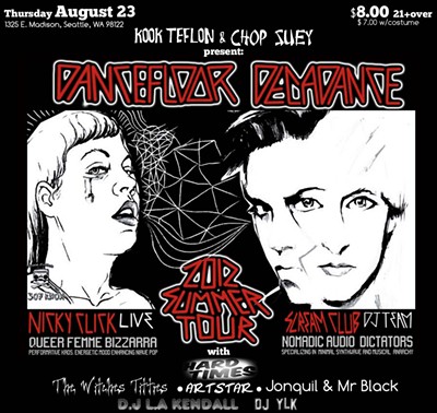 Chop Suey & Kook Teflon Present DANCEFLOOR DECADANCE with Scream Club, Nicky Click, The Witches Titties, Artstar, Jonquil & Mr Black, Jackie Hell, DJ L.A. Kendall & DJ YLK
