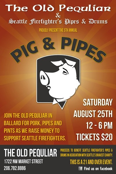 Join The Old Pequliar in Ballard for Pork, Pipes and Pints as we raise money to support Seattle Firefighters.