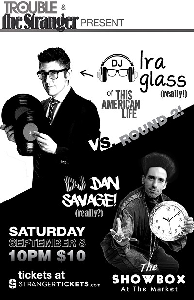 NPR's own IRA GLASS is a well-known documentarian AND a SECRET DJ. Join us at the IRA GLASS AFTER PARTY on September 8th at The Showbox (just a minute from Benaroya Hall) where sex advice columnist Dan Savage will take turns mixing amazing dance music with Ira. If you missed the last one, you do NOT want to miss this.