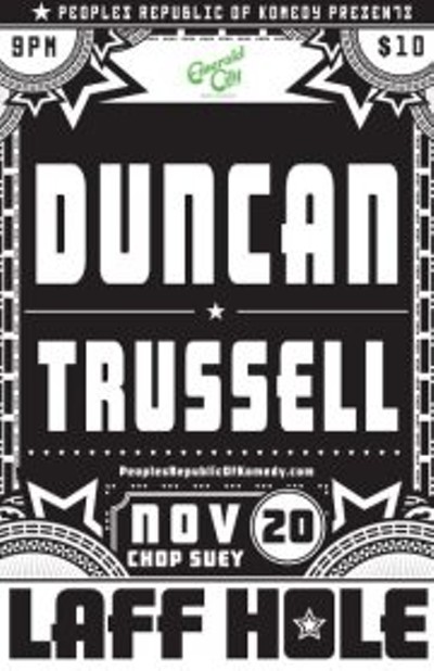 Tue Nov 20 $10adv / 8:30pm doors / 21+People's Republic Of Komedy PresentsLAFF HOLE!feat.DUNCAN TRUSSELL