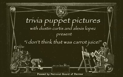 Join Trivia Puppet Company as we welcome Spring! Beautiful green May brings many secrets and stories to tell and we are excited to share them. We will be offering two encore performances of our May 3rd show. Join us for a new crankie, a new shadow piece and a screening of the movie we recently made as part of the Puppet Movie 48hr challenge, "i don't think that was carrot juice".