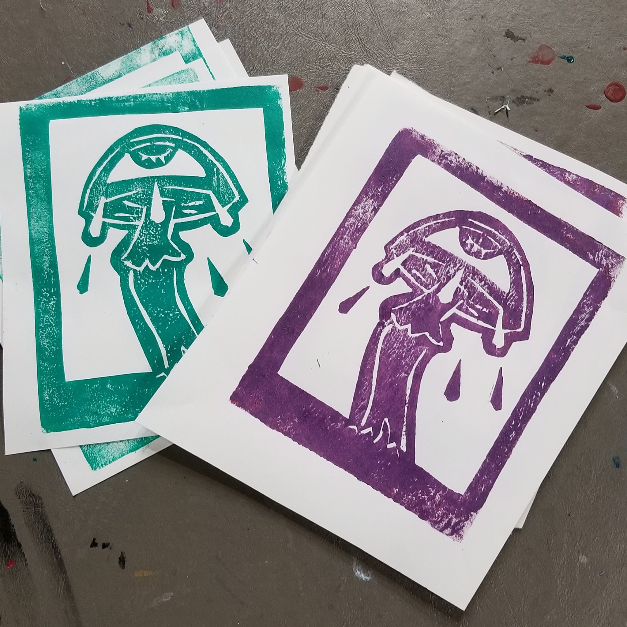 Fast students will have time to make two blocks. Everyone will finish one block. Feel free to bring items to print on. Paper, cards and fabric are provided.